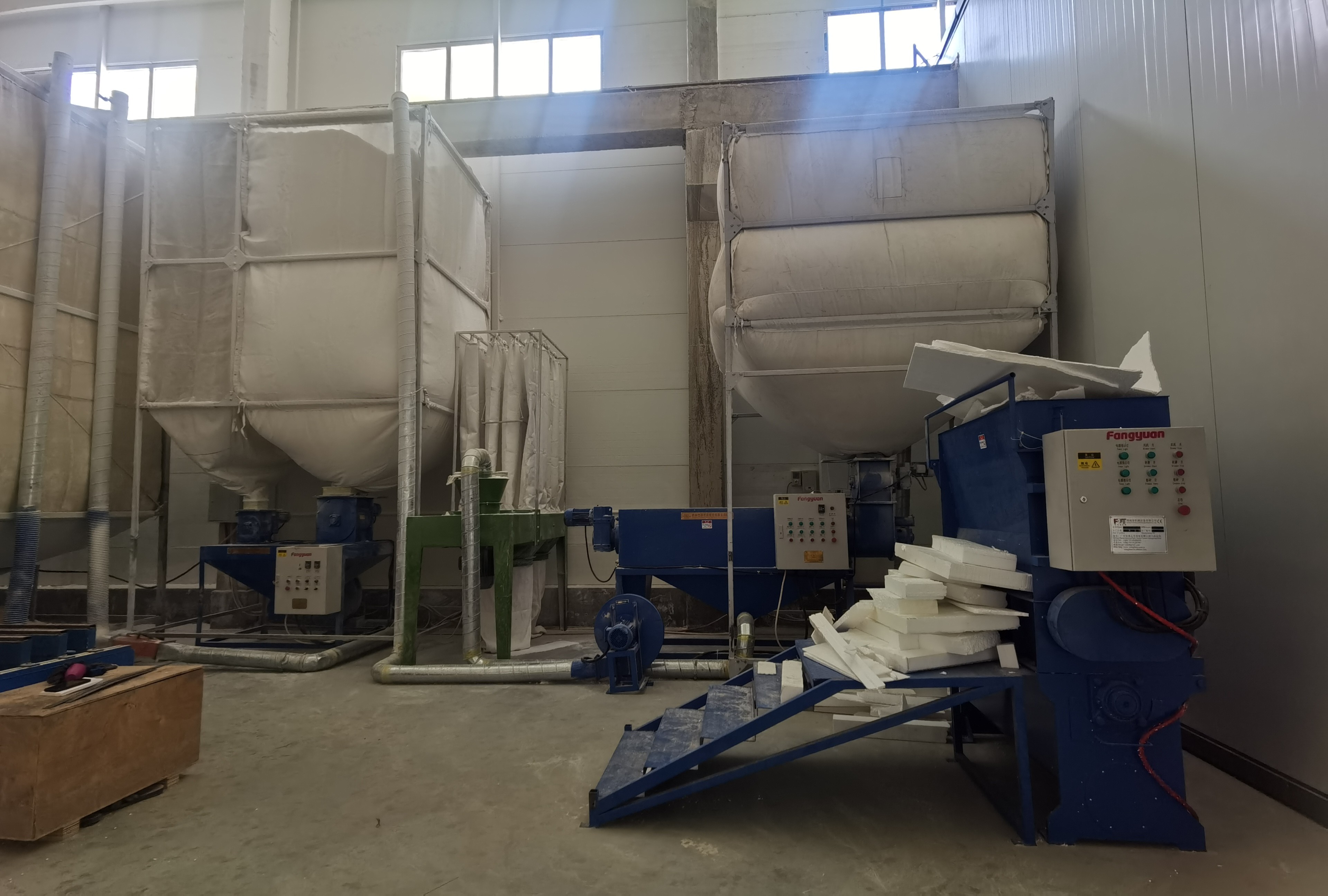أحدثت ورشة عمل إنتاج EPS منتجات معيبة ، يمكن إعادة استخدام القطع من خلال هذا النظام إعادة التدوير ، لشركة لكسب أرباح أكبر